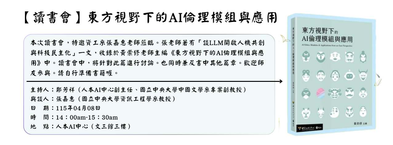 · 【影音專訪 & Podcast】《東方視野下的AI倫理模組》————「談LLM開啟人機共創與科技民 […]